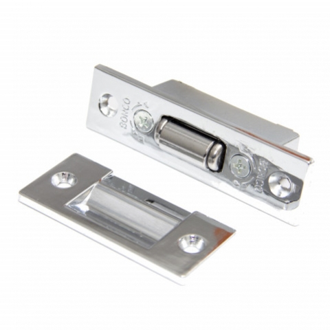 Роликовая защелка предназначена для установки на межкомнатные деревянные двери. Ригель выполнен в форме ролика, поэтому для открывания не требуется поворота дверной ручки. |