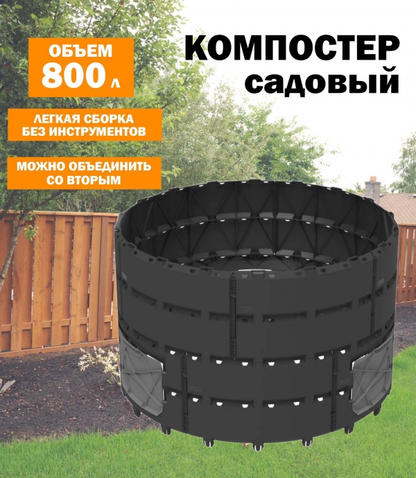 Компостер садовый Агроном Премиум на 800л - это незаменимый способ получения натурального удобрения из травы, листьев, пищевых органических отходов для ваших грядок. Емкость легко собирается без использования специальных инструментов. В компостере нет дна (крышки), лишняя влага не застаивается, в бак проникают дождевые черви, которые способствуют компостированию. Так как контейнер не имеет дна, устанавливать его необходимо на землю или газон, в слегка затемненное место (тень от деревьев, кустарников, садового домика, задний двор), его легко перенести с места на место. Прочный пластик устойчив к температурным перепадам, легко выдерживает сильные морозы. Пластиковый хозяйственный ящик для компоста создает благоприятные условия для размножения полезных бактерий и насекомых, способствующих созреванию удобрения. Процесс компостирования в таких емкостях происходит существенно быстрее, чем в компостных ямах, благодаря свободному притоку воздуха удобрение получается равномерным, качественным по структуре, вентиляционные отверстия обеспечивают необходимое поступление кислорода в почву. Компост является универсальным биологическим удобрением, улучшает качество почвы и хорошо усваивается садовыми растениями на огороде и в теплице, незаменимая вещь на дачном участке. В случае, если к концу года в компостере остался перегной, его можно переложить в мешки для компостирования и удобрять домашние комнатные растения, зимний сад, использовать для рассады. Компостер прочный, снизу имеется три дверцы, с их помощью удобно выгребать получившееся удобрение. |