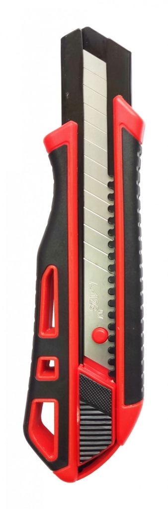 Усиленный двухкомпонентный противоскользящий корпус обеспечивает крепкий и надежный захват. Трещоточный фиксатор для большего усилия при резе сложных материалов. Лезвие изготовлено из легированной стали У8А и имеет двойную заточку, что увеличивает срок службы. Применяется для разрезания различных материалов: линолеума, ковровых покрытий, гипсолитовых плит, гипсокартона, кровельных материалов, пластика, дерева и т.д. |