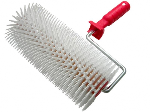 Игольчатый валик для наливных полов на металлической рамке 123х500 мм инструмент с длиной иголок 13 мм для прокатывания жидкого наливного покрытия. Такой валик позволяет равномерно распределить состав и устранить воздушные пузырьки, что обеспечивает прочность покрытия. Рукоять предусматривает использование валика совместно с телескопическим удлинителем. |