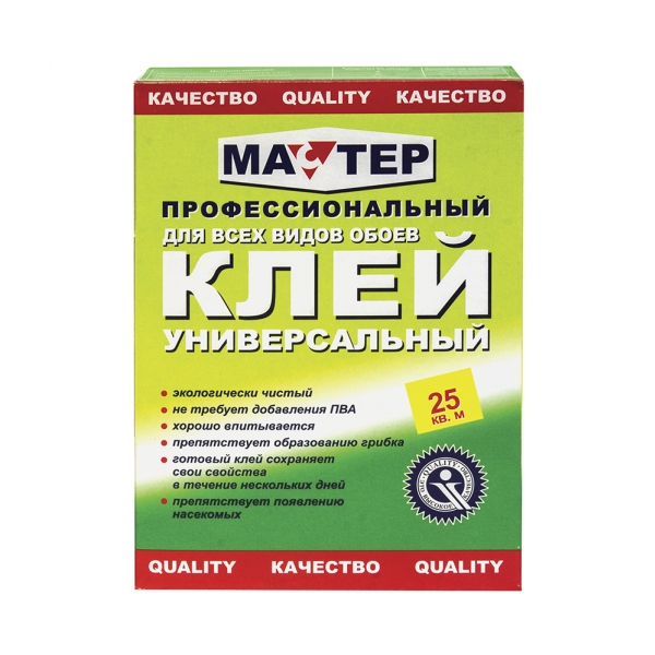 КЛЕЙ ОБОЙНЫЙ QUALITY МАСТЕР УНИВЕРСАЛЬНЫЙ: Вес - 200 гр. Тип: универсальный. Назначение: приклеивание бумажных, легких виниловых обоев. |